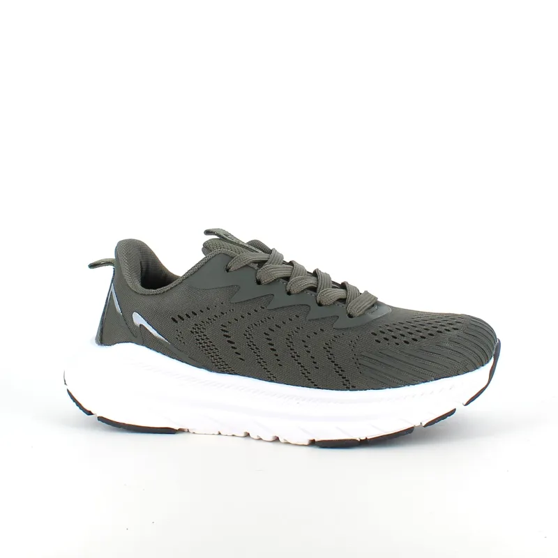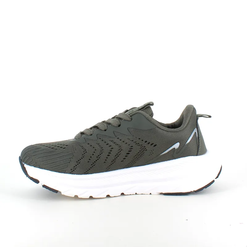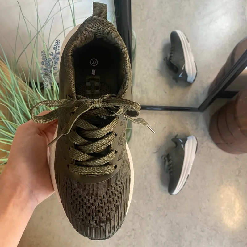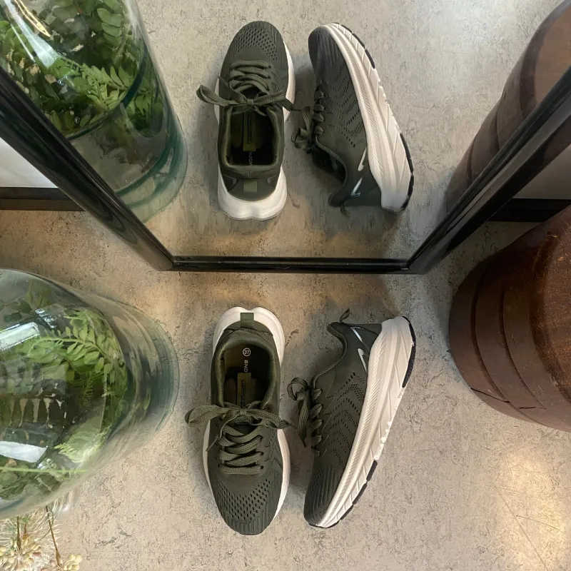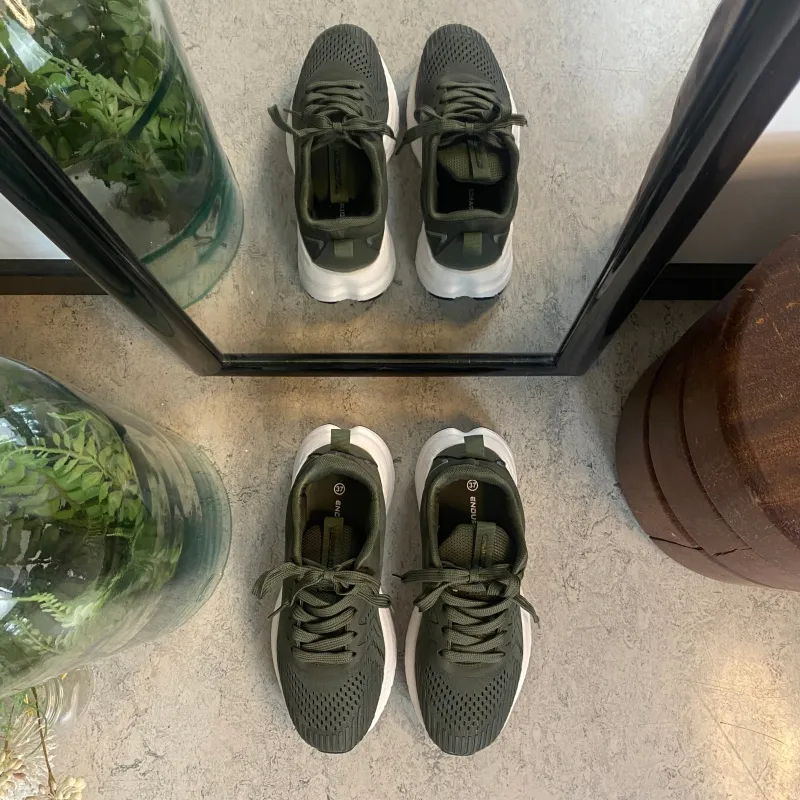 Mørkegrøn åndbar sko fra Endurance med effektiv stødabsorbering.