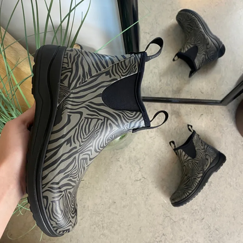Green Comfort Gummistøvler|Stødabsorberende Sko*gummistøvle i zebraprint med svangstøtte