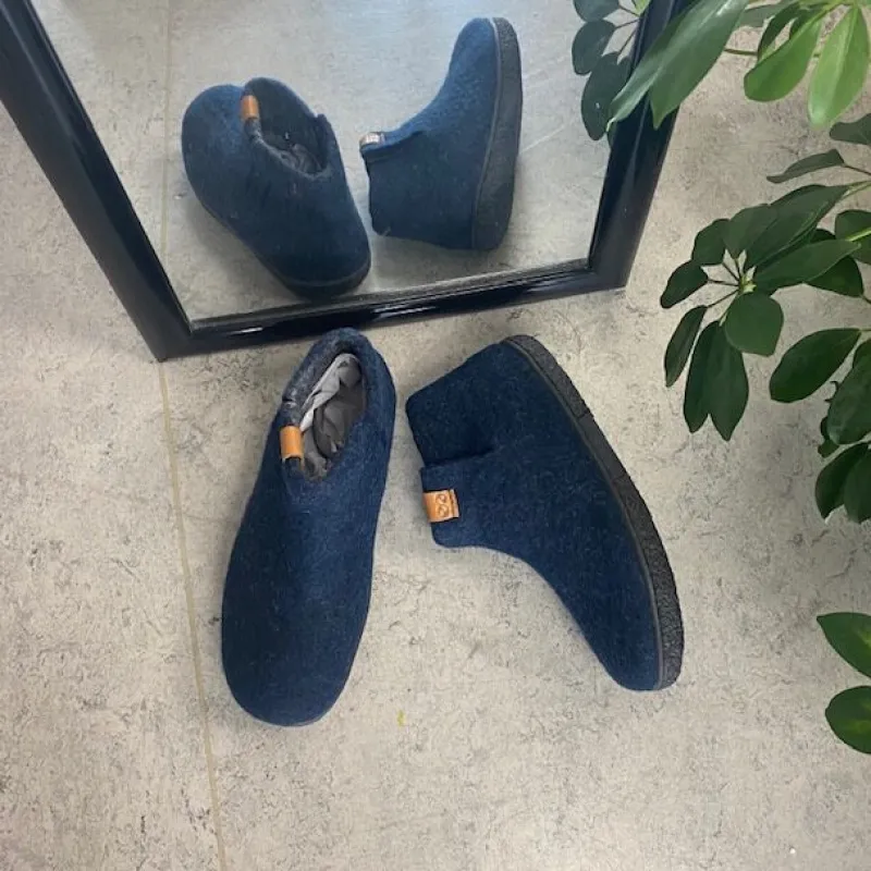 Lækker blå uld hjemmesko med høj skaft fra Green Comfort.
