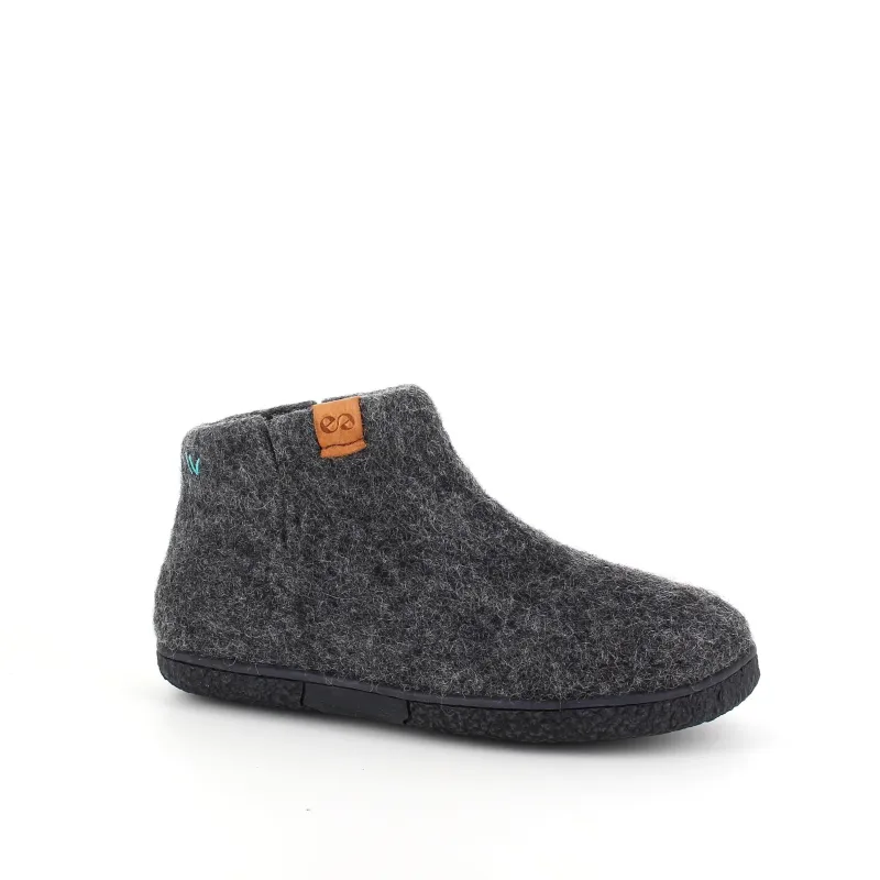 Lækker mørkegrå uld hjemmesko med høj skaft fra Green Comfort.