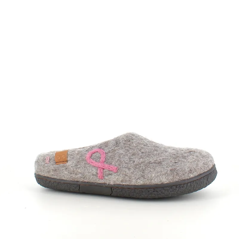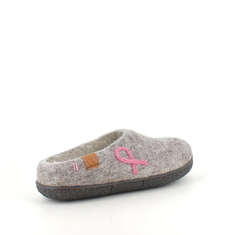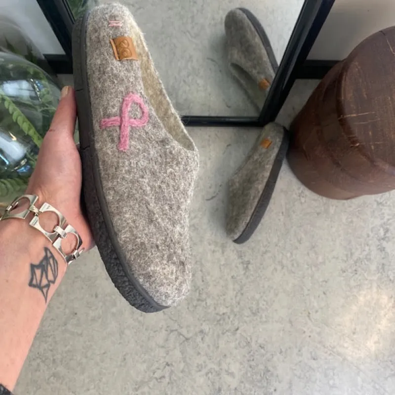 Oplev vores limited-edition uldhjemmesko, skabt i samarbejde med Støt Brysterne og Green Comfort, hvor hver eneste sko er håndbroderet med den velkendte lyserøde sløjfe på højre yderside. Når du køber et par uldhjemmesko fra denne kollektion, går 50 kr. direkte til Støt Brysterne, så du tager små skridt med stor betydning.