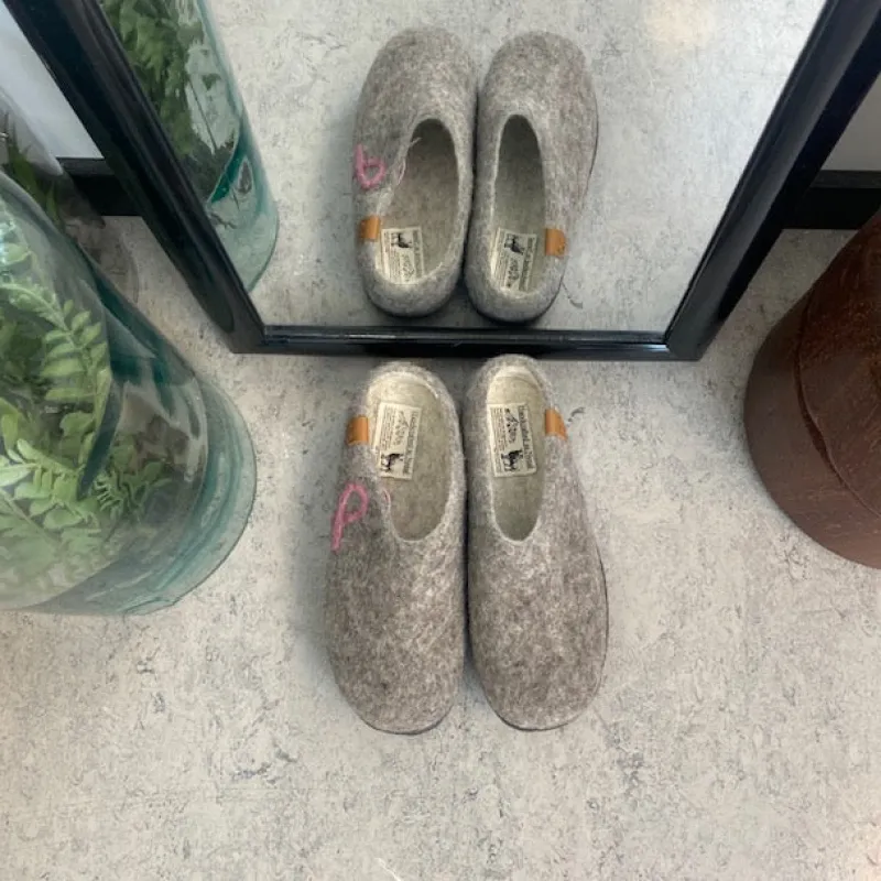 Hver Green Comfort hjemmesko er et håndlavet mesterværk, komplet med et unikt lille tag på siden, som indikerer, hvem der har håndlavet netop dit par. Denne personlige detalje betyder, at hver sko har sit eget særpræg.