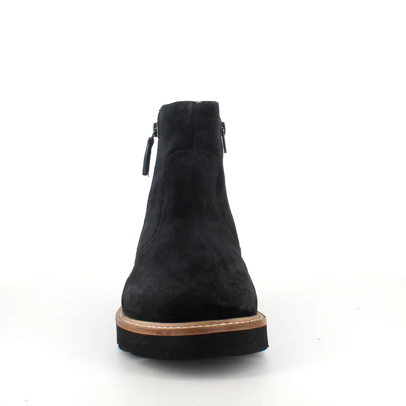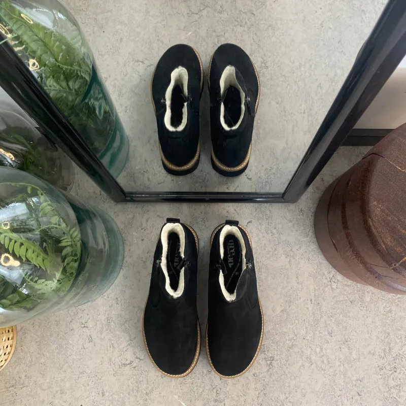 Overdelen i denne flotte støvle er i ruskind der giver et klassisk og stilfuldt udtryk, samtidig med at materialet er slidstærkt og behageligt.
