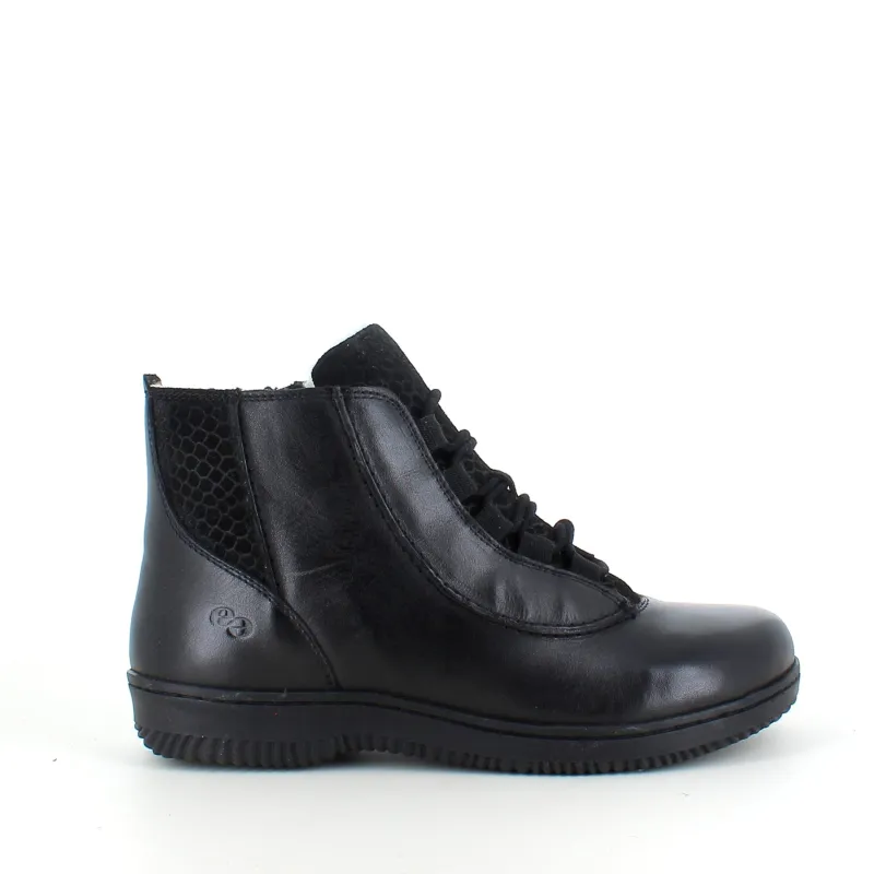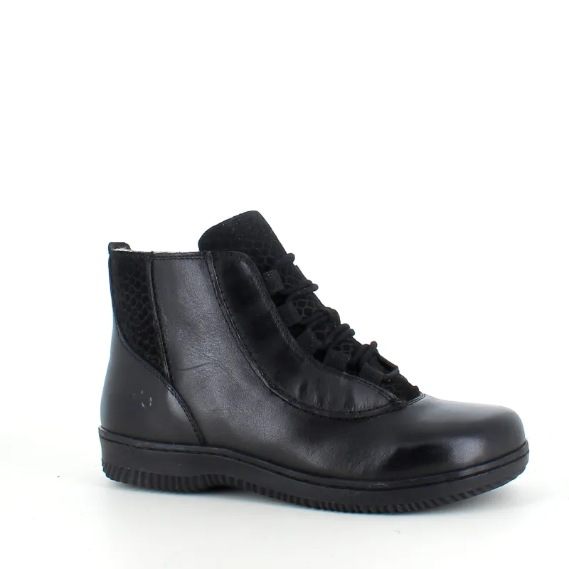 Det praktiske snørestykke gør det muligt at tilpasse støvlen, mens lynlås på siden sørger for, at den er hurtig og nem at tage af og på.