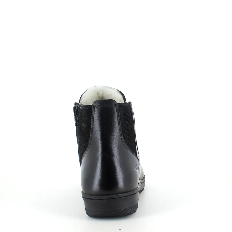 Støvlen er lavet af læder og har smarte detaljer i præget ruskind.