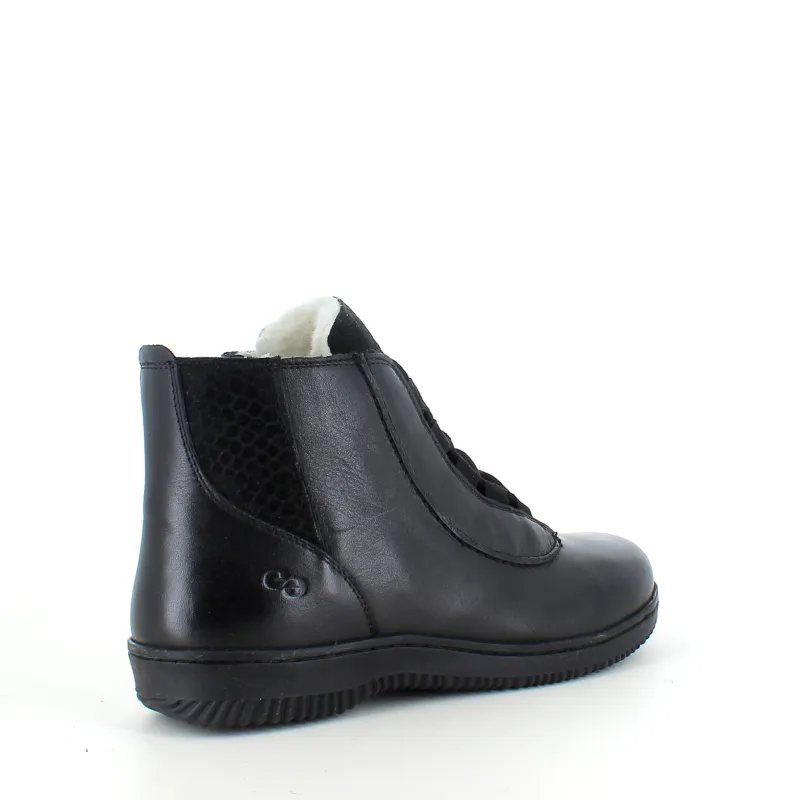 Denne korte læderstøvle kombinere varme, komfort og funktionalitet.