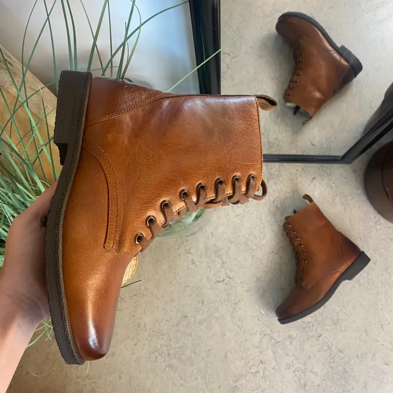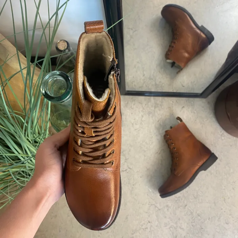 Flot cognac-farvet støvle fra Green Comfort, støvlen er foret med en kombination af Soft Tex og uld, som sikrer varme og blød komfort hele dagen.