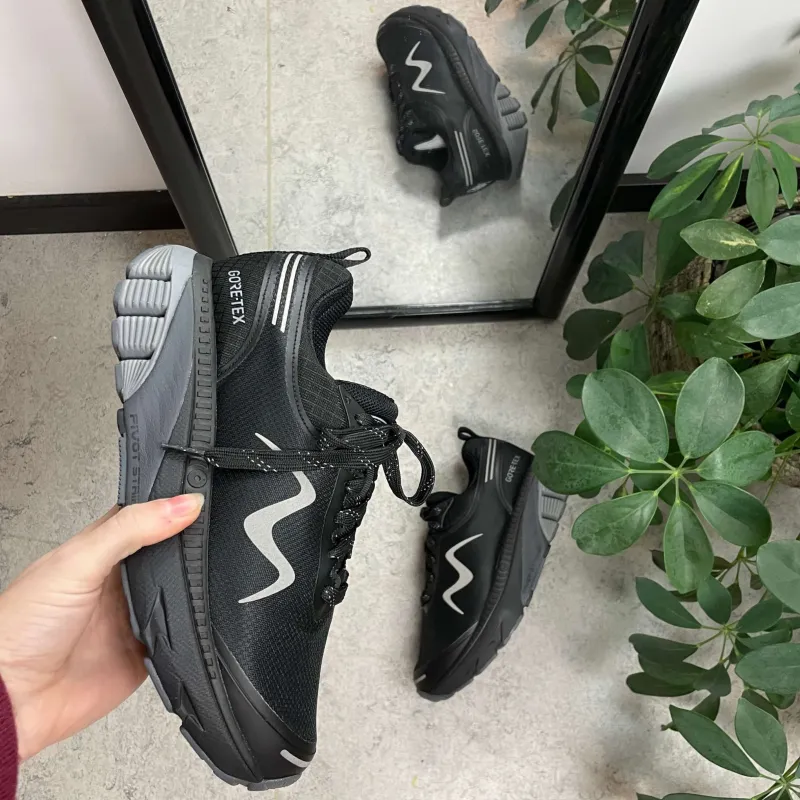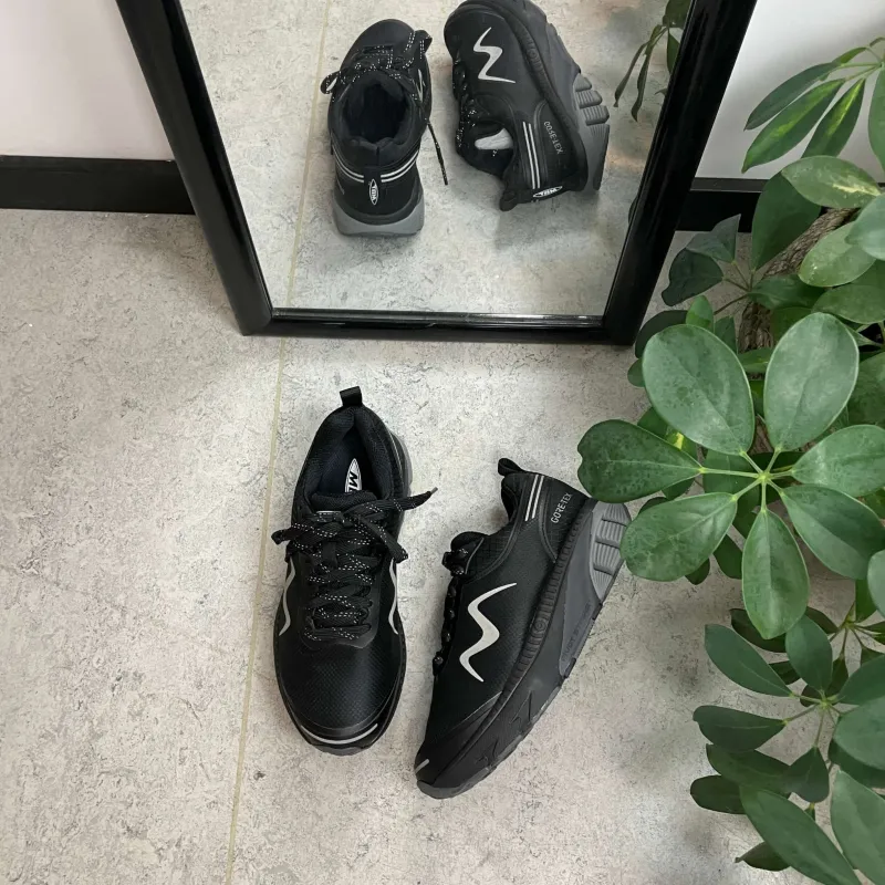 Den sorte MTR 1600 GTX/SYM løbesko med en overdel i Goretex eller Symtex, som giver både en åndbar og vandtæt sko.