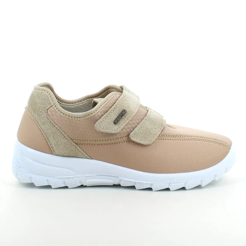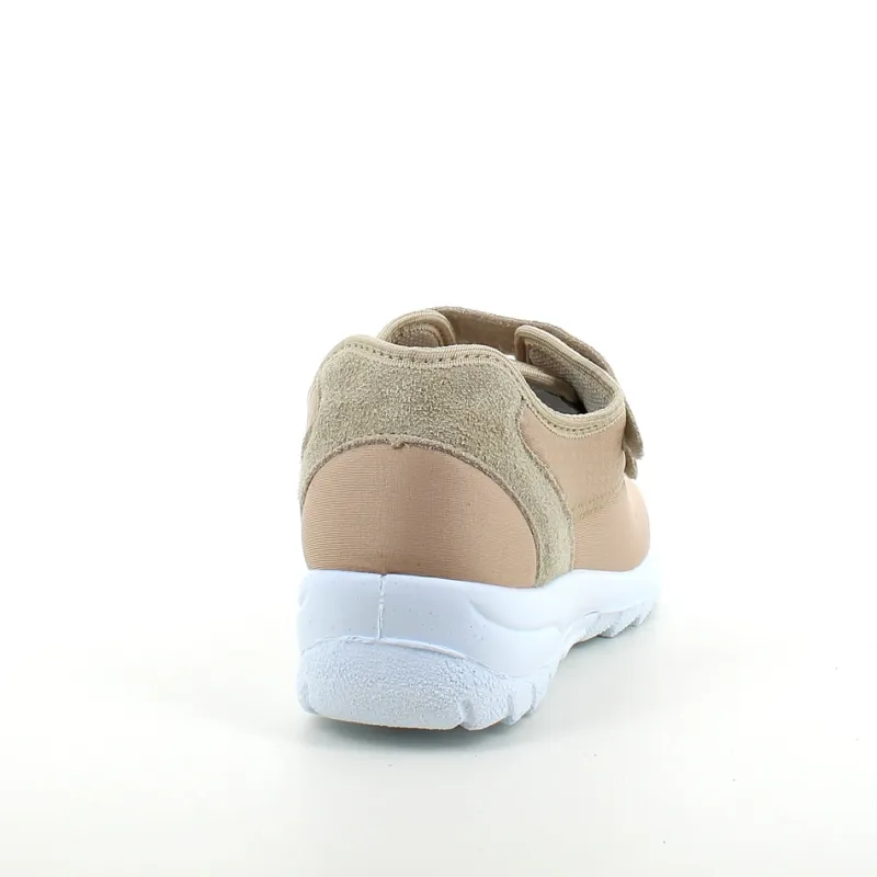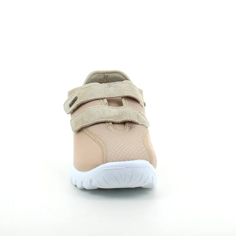 Sko i lys beige med skind detaljer og en meget bred pasform.