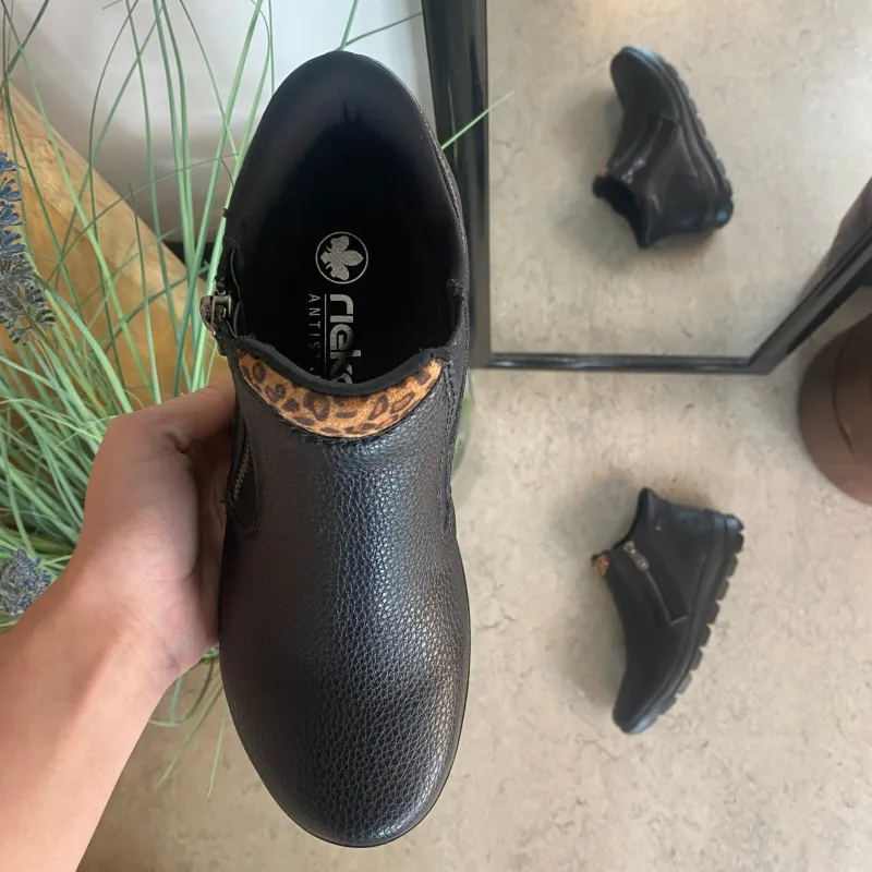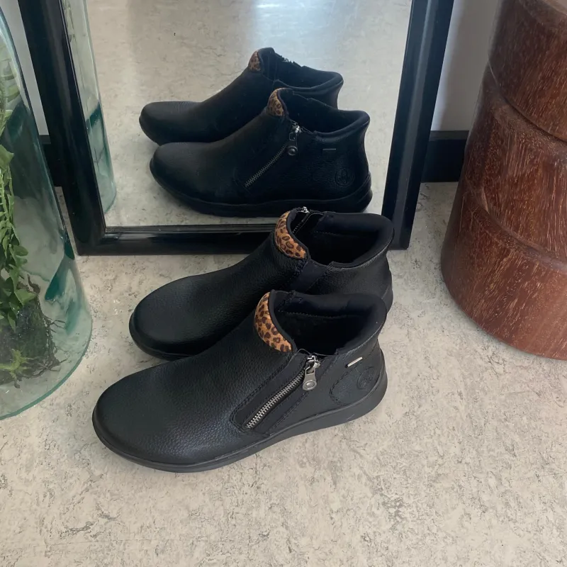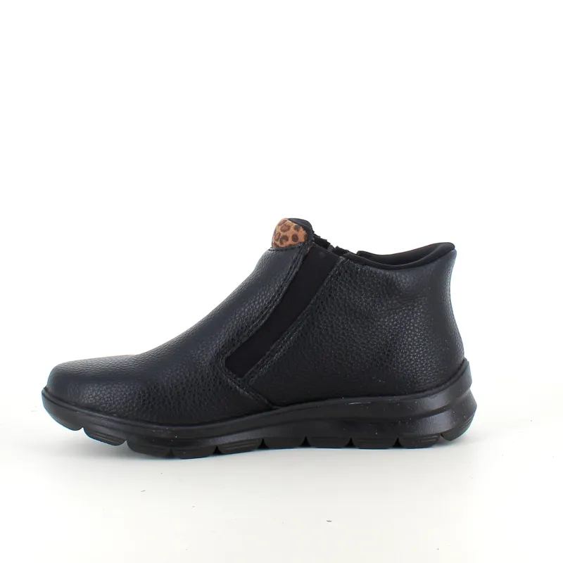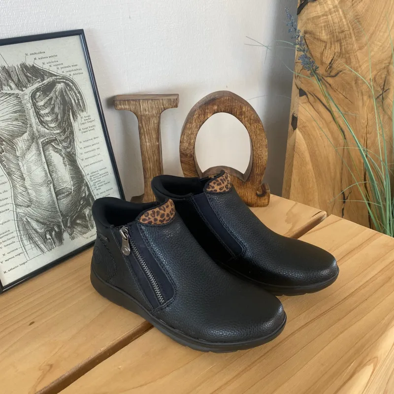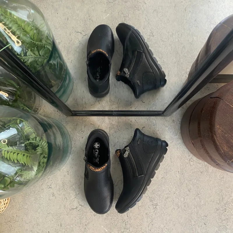 Oplev Rieker Ready 2 Go støvle i klassisk sort, som kombinerer tidløst design med praktiske og komfortable detaljer.
