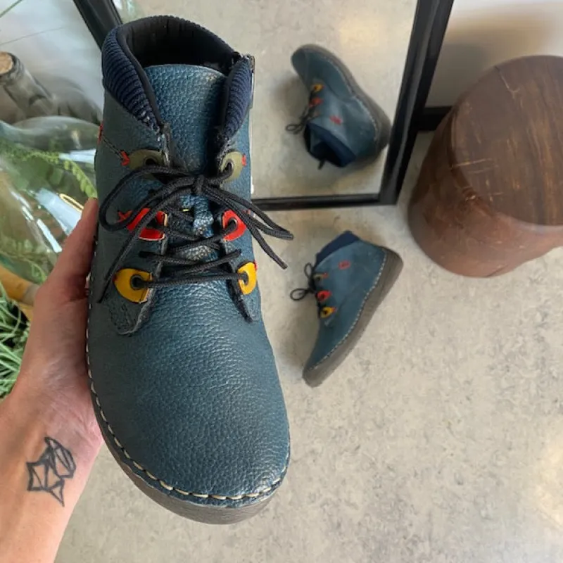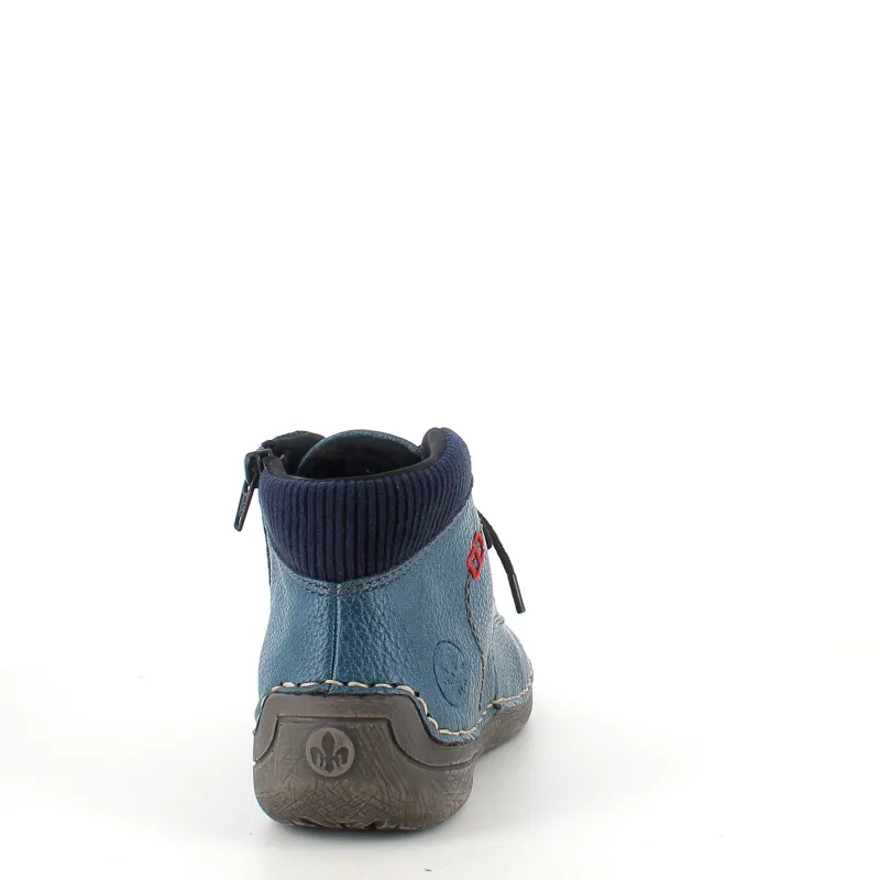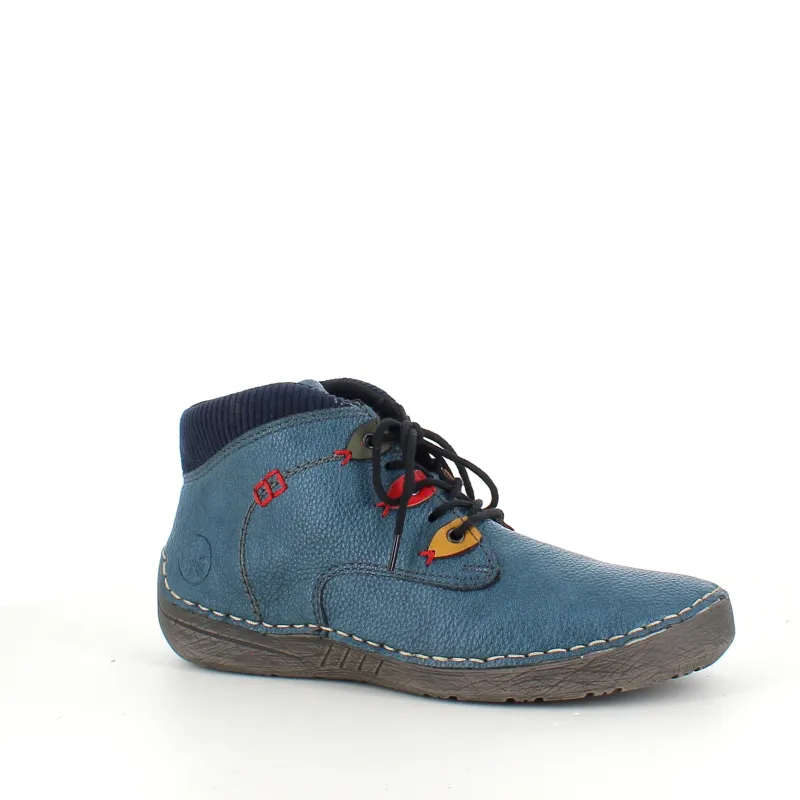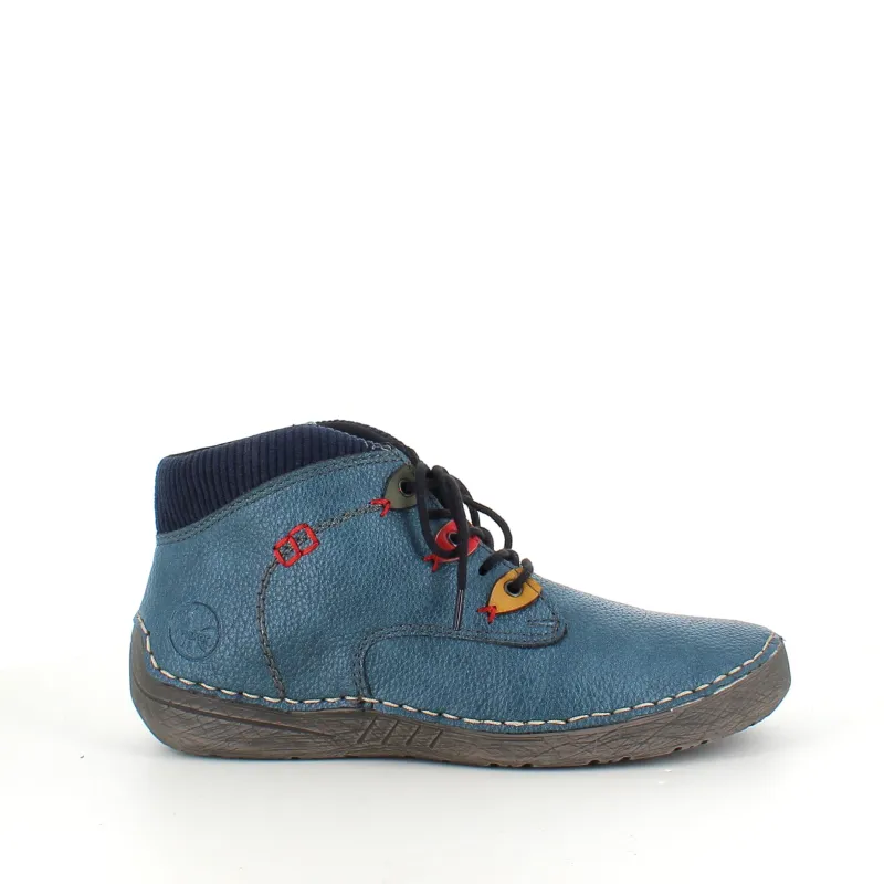 Den korte blå støvle fra Rieker kombinerer komfort, fleksibilitet og et friskt strejf af farve.