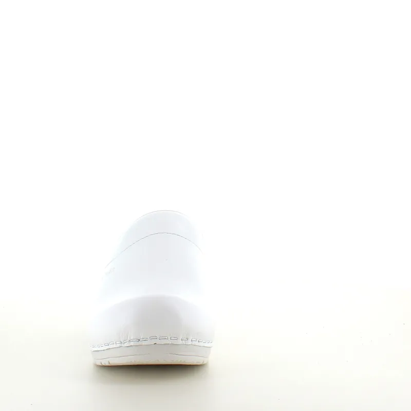 Disse hvide træsko er lavet af PU-læder, hvilket gør dem lette at rengøre og ideelle til professionel brug.