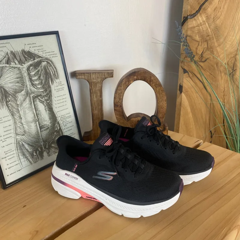 Den er desuden udstyret med Skechers Hands Free Slip-ins®, der gør påtagning enkel, samt Heel Pillow®, som holder foden stabil og støtter hælen optimalt.