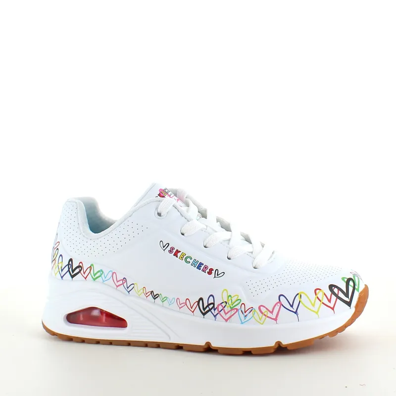 Oplev disse unikke sko skabt i samarbejde mellem kunstneren James Goldcrown, kendt for sine Lovewall-hjerter, og Skechers.
