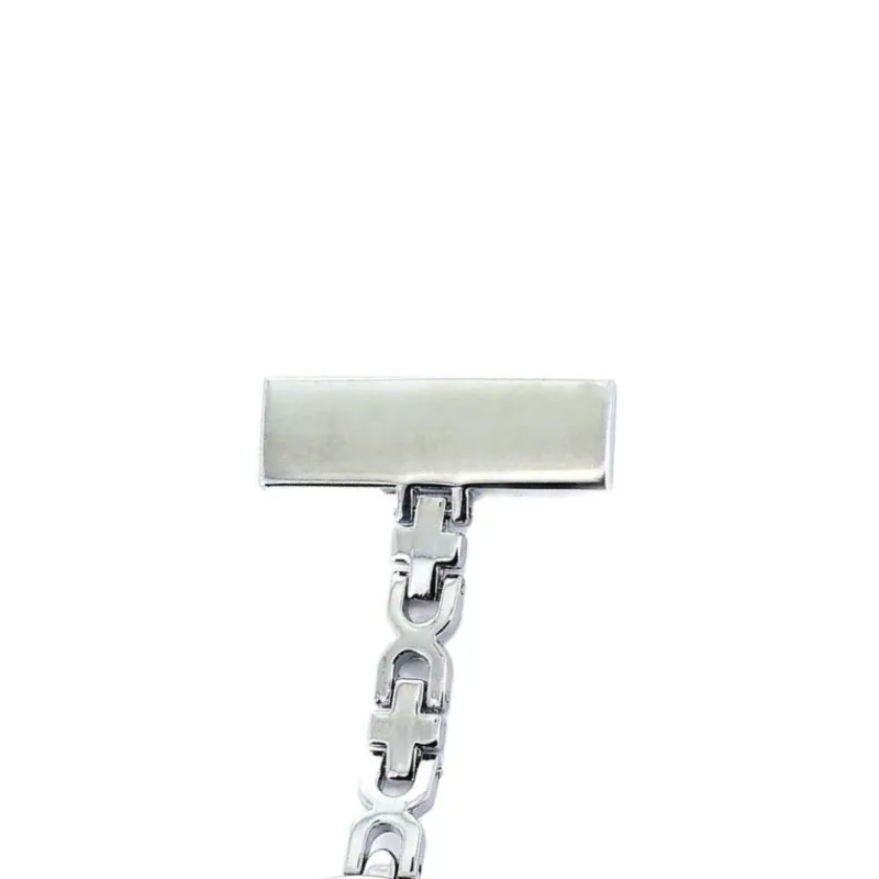 Sygeplejeuret med kæde med gravering. Sygeplejeuret er i stål med valgfri gravering. Sygeplejebutikken anbefaler gravering af bogstaver max. 14 bogstaver.