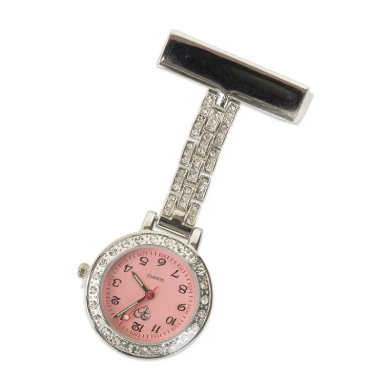 Sødt sygeplejeur med krystaller og gravering. Sygeplejebutikken anbefaler navn foran på vedhæftningsdelen. Vi anbefaler max. 14 bogstaver for, at det bliver pænt.