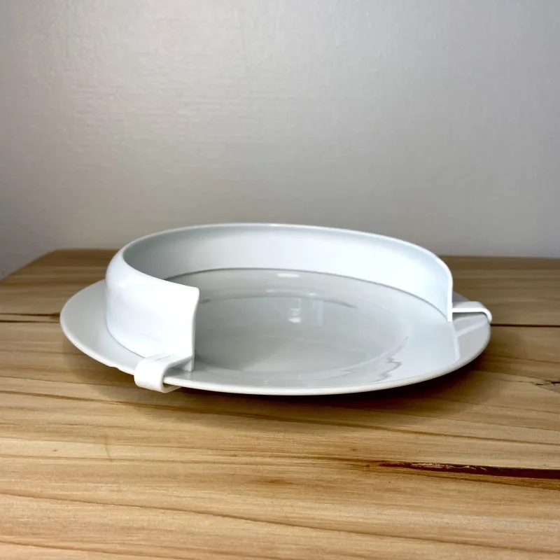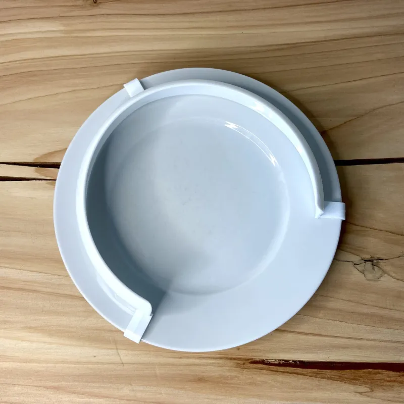 Den ekstra kant til din tallerken har 3 kroge der er nemme at klikke på en tallerken og holder derved kanten fast
