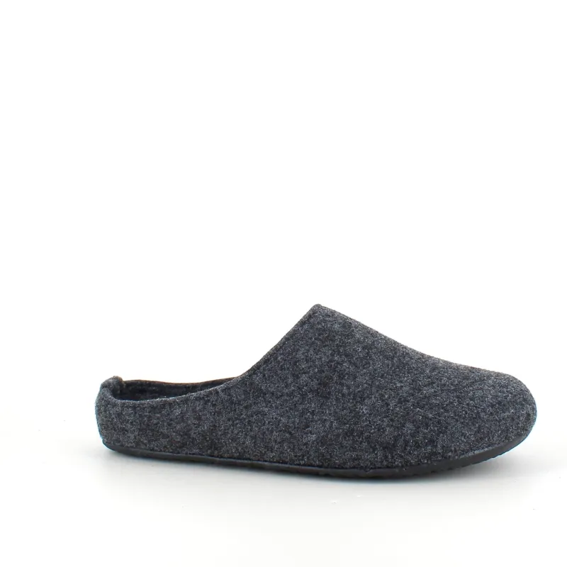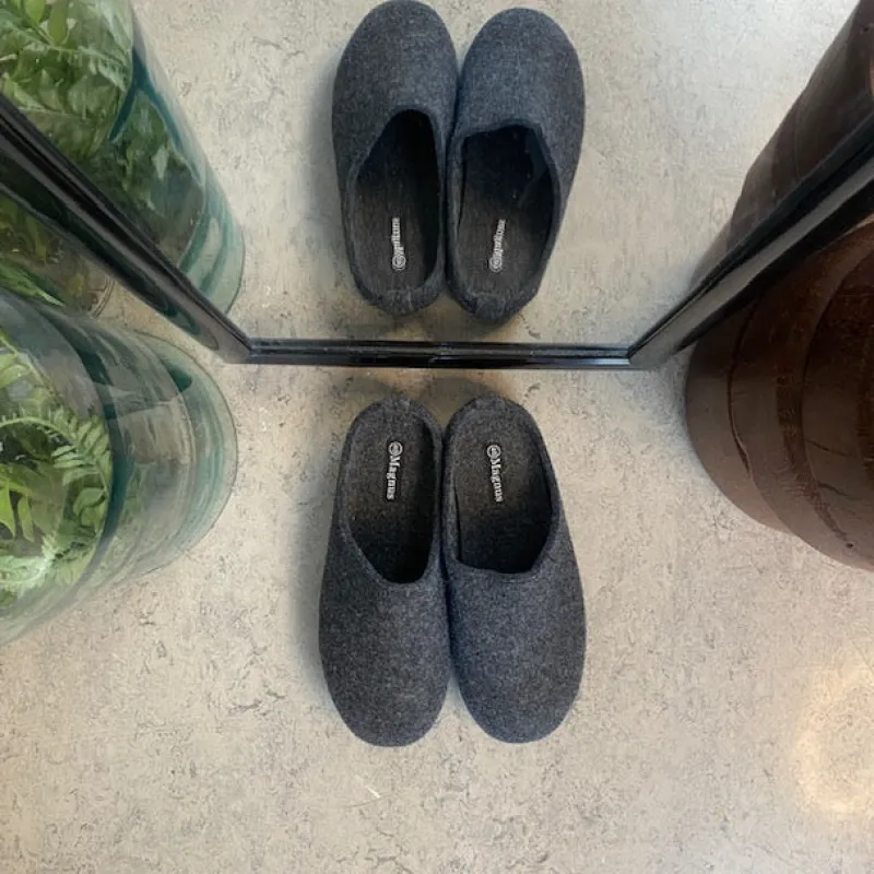 Mørkegrå filthjemmesko, som giver dig komfort og varme.