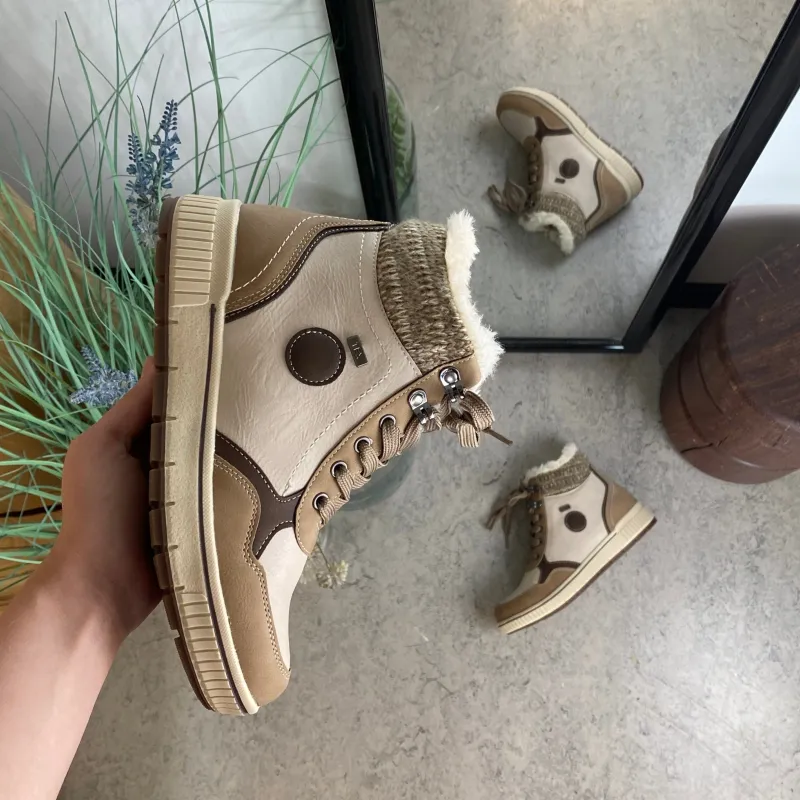Vinterstøvle i farven Taupe, med strikket detalje på skaftet.