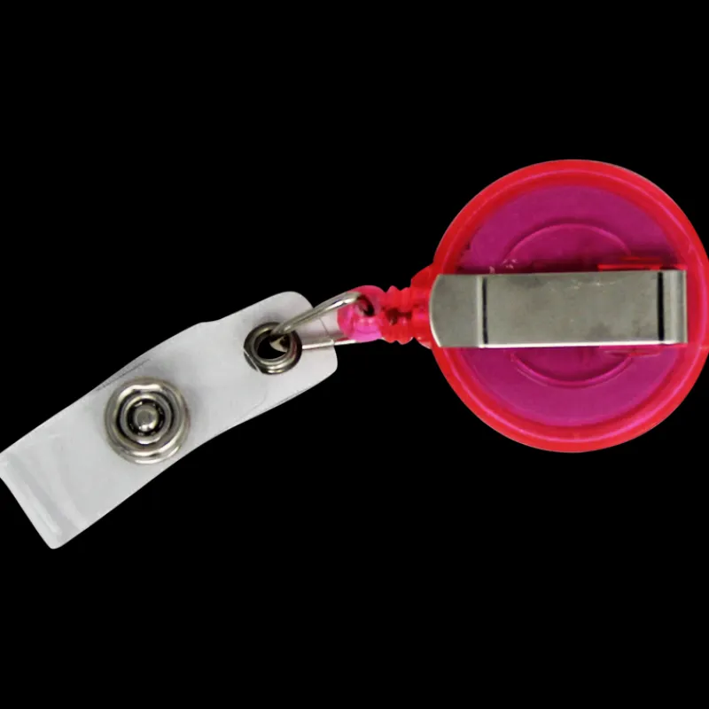 Nøglering med metal clips for nem fastgørelse til lomme, bælte eller bukselinning. Nøgleringen er udstyret med en plastic snap loop til ID-kortholdere.