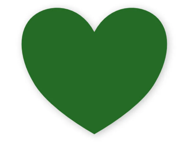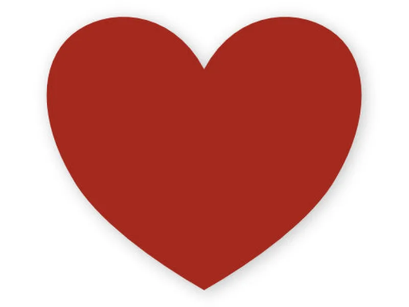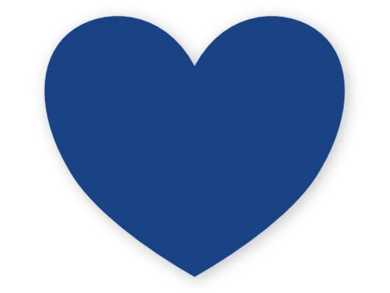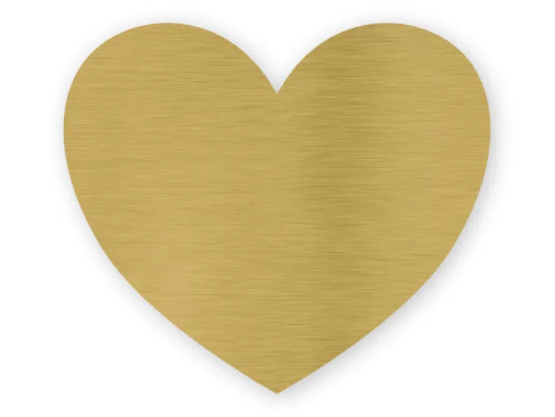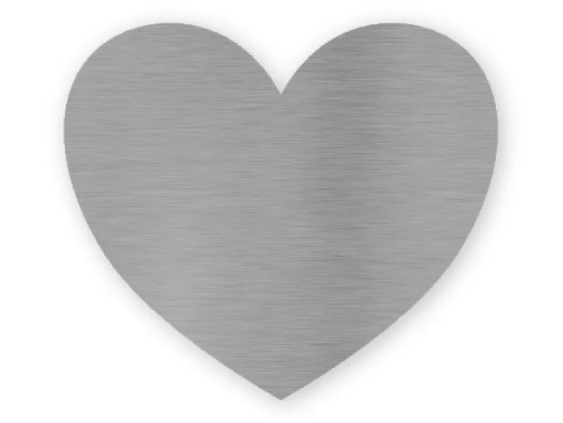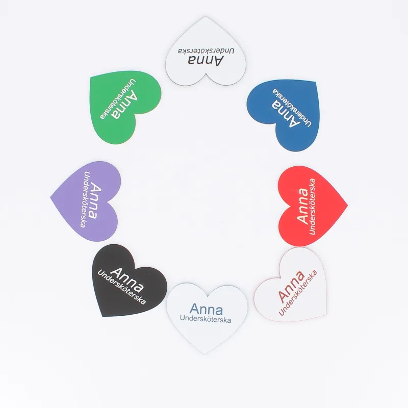 Navneskilt i hjerteformet med nål bagpå.