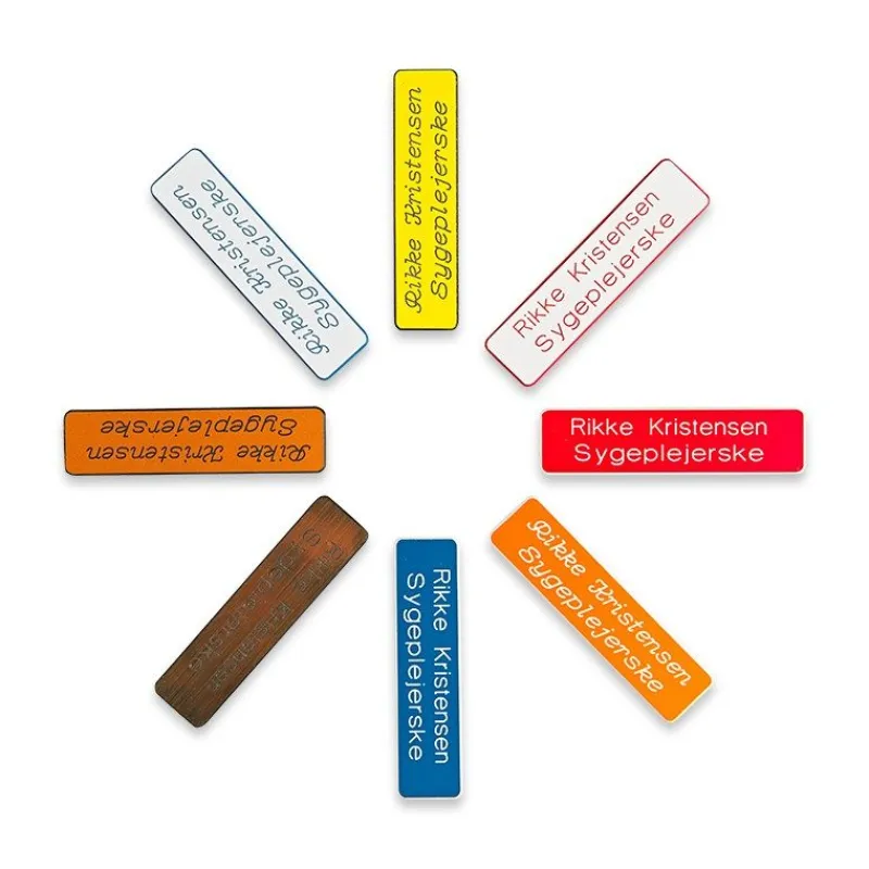 Vi anbefaler at der skrives titel og navn. Navneskiltet findes i et væld af farver.