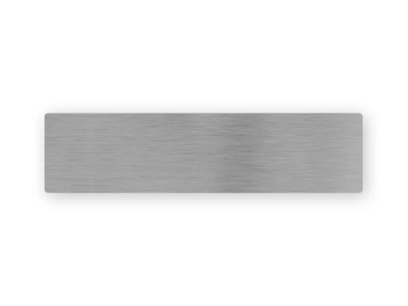 Skiltet måler 8 cm i længden og er 2 cm i bredden.