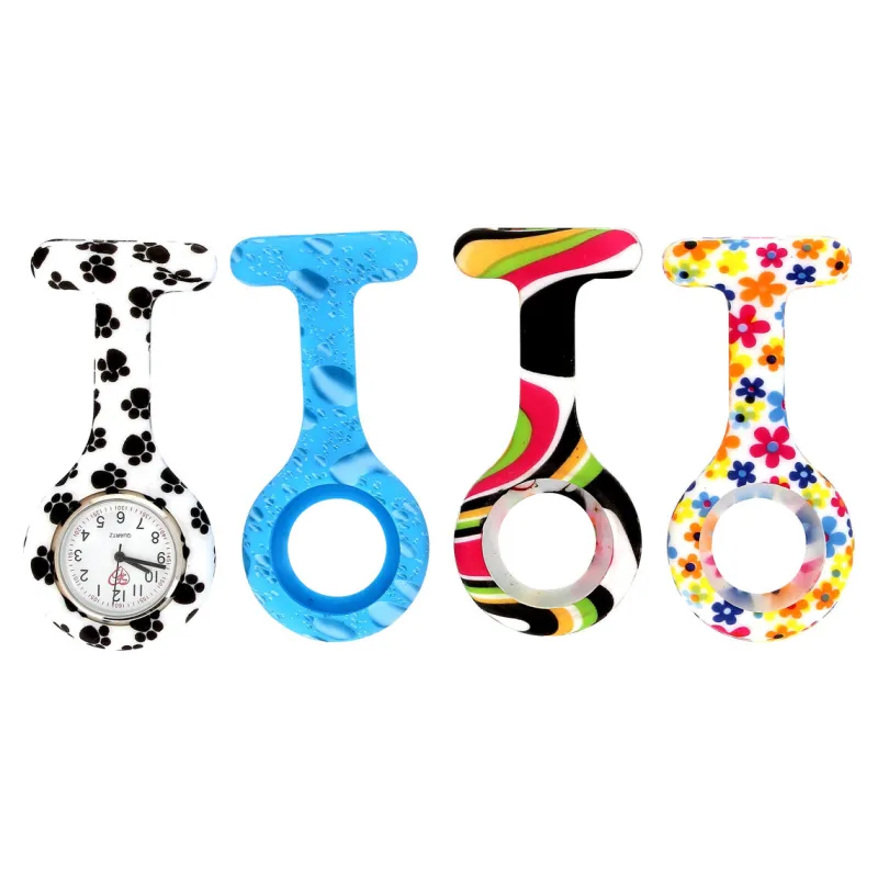 Et ur i blødt og lækkert design, der er 9 cm langt og 4 cm bredt. Uret sidder godt fast på uniformen, så du ikke rammer patienterne med sygeplejeuret, når du læner dig ind over dem.