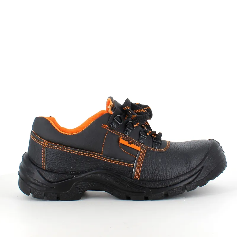Sort sikkerhedssko med overdel i læder.