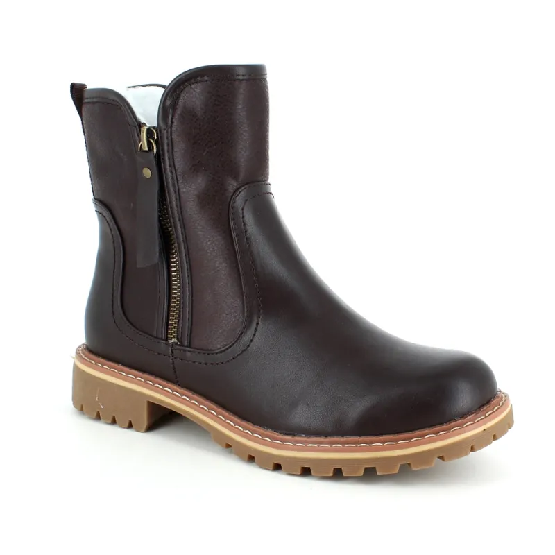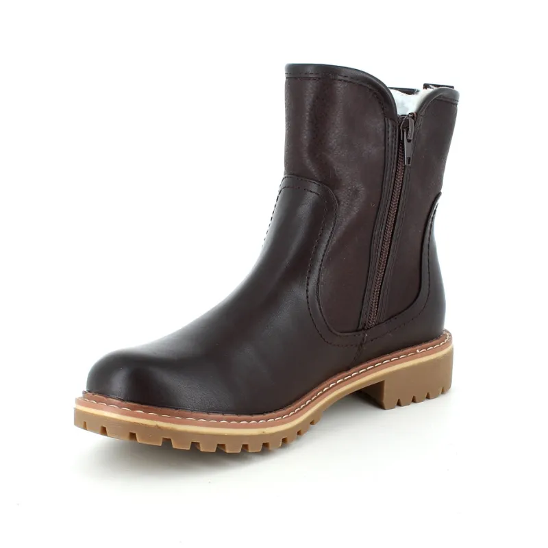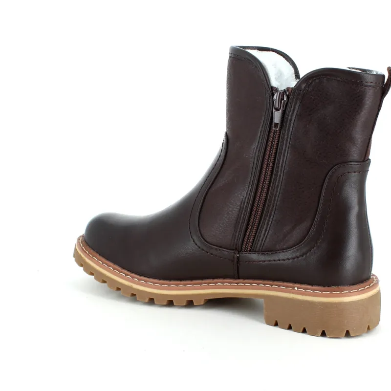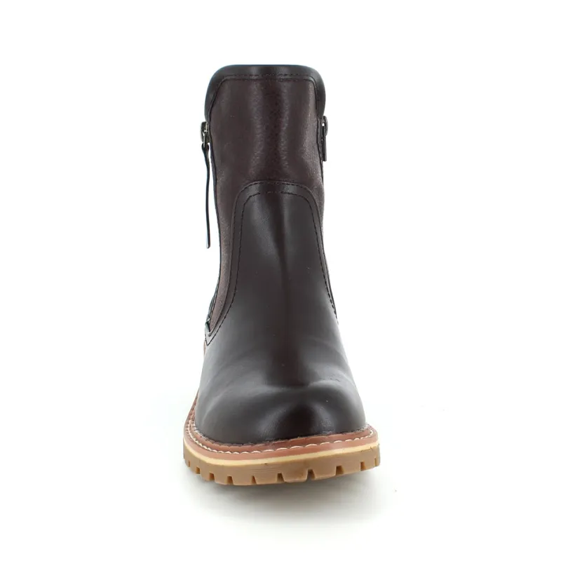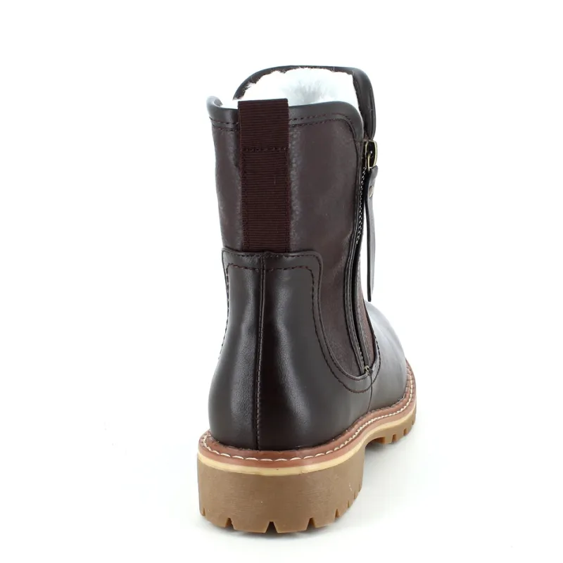 Mørkebrun støvle med flotte detaljer.