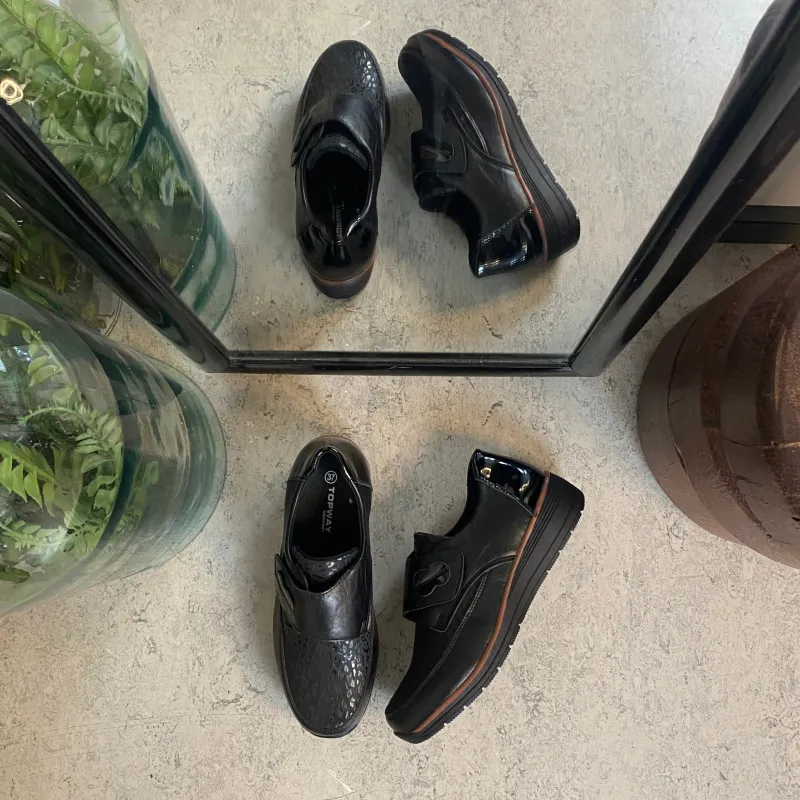 Den har en lav kilehæl som giver god komfort og sikre stabilitet.