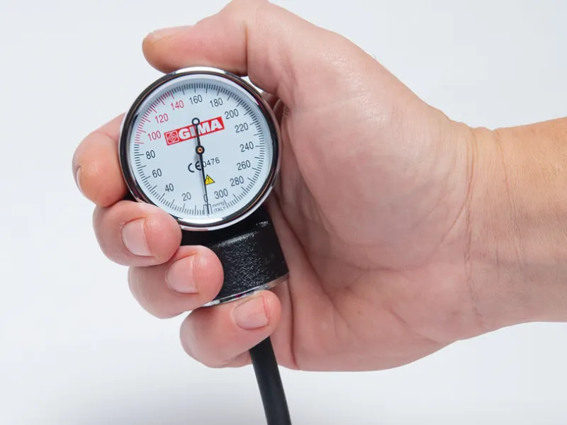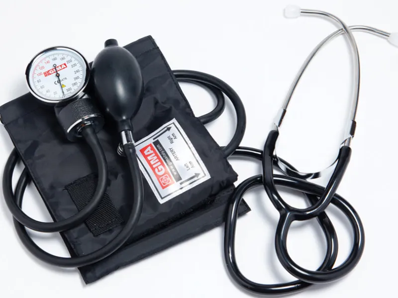 Blodtryksmåler med indbygget stetoskop.