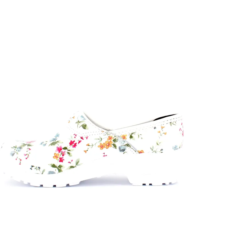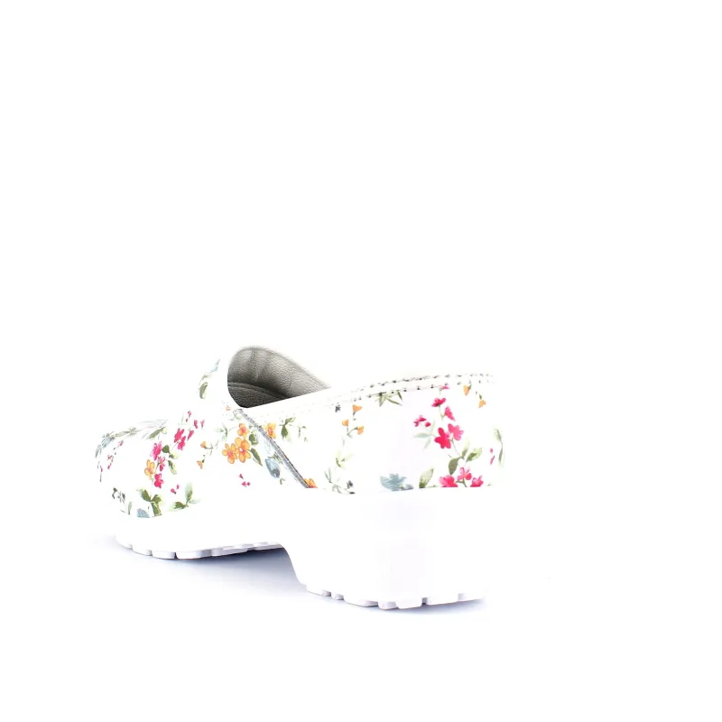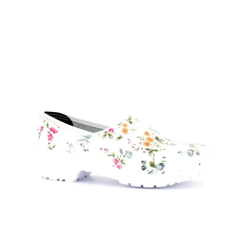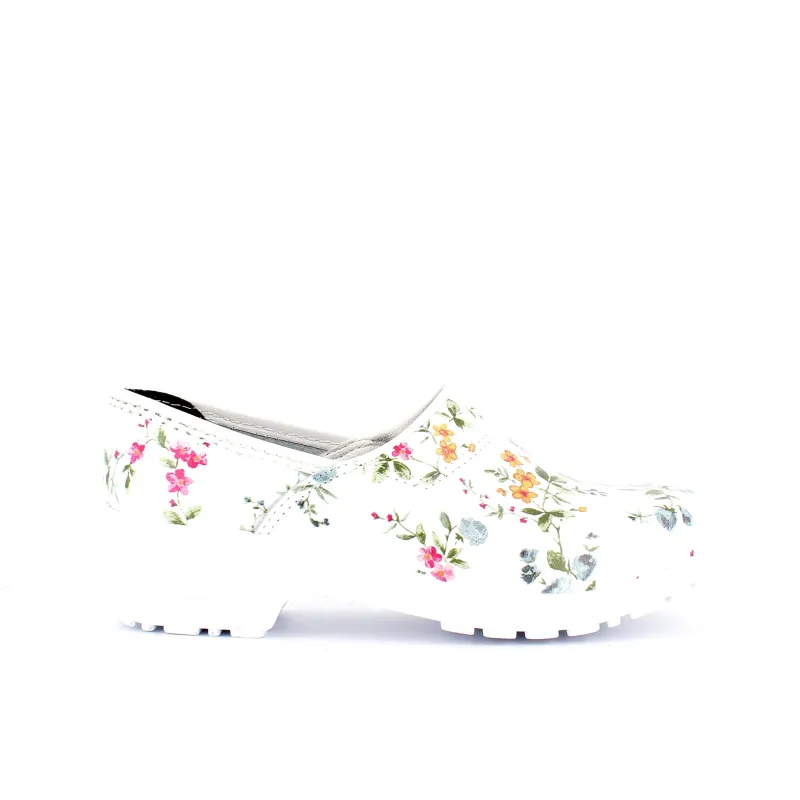 Hvid blomstret træsko i Dansk kvalitet med kap.