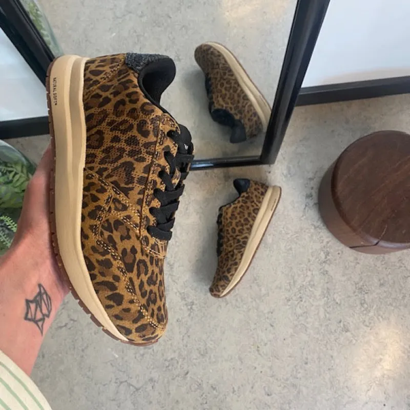 Skoen er fremstillet i LWG-certificeret ruskind, hvilket giver et markant dyreprint, der skaber et struktureret og iøjnefaldende look.