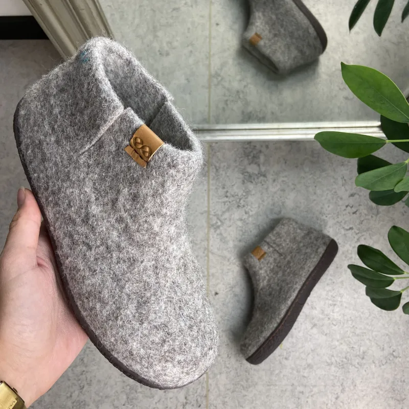 Alle sutsko fra Green Comfort er håndlavede og du vil se at der sidder et lille tag på siden af hjemmeskoen. Dette tag er individuelt ud fra hvem der håndlaver hjemmeskoene.Derfor kan der være små variationer i hjemmeskoene.