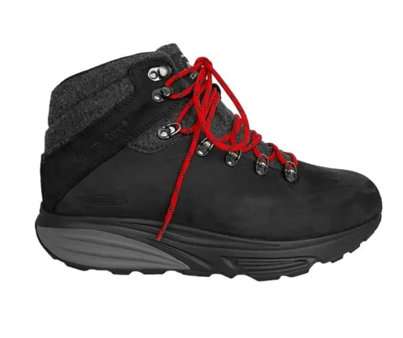 - Stilfuld og funktionel: MBT Alpine er en klassisk outdoorstøvle fremstillet af Full Grain læder med matchende detaljer i mørkegrå uld og polyester. Den er designet til at kombinere stil og funktionalitet, så du kan bevæge dig frit uden at gå på kompromis med komforten, selv i dårligt vejr.