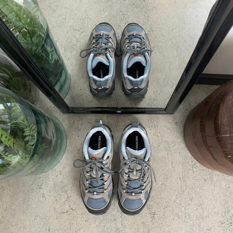 Merrell vandresko i grå og blå, med maksimal komfort og holdbarhed på både korte og lange ture.