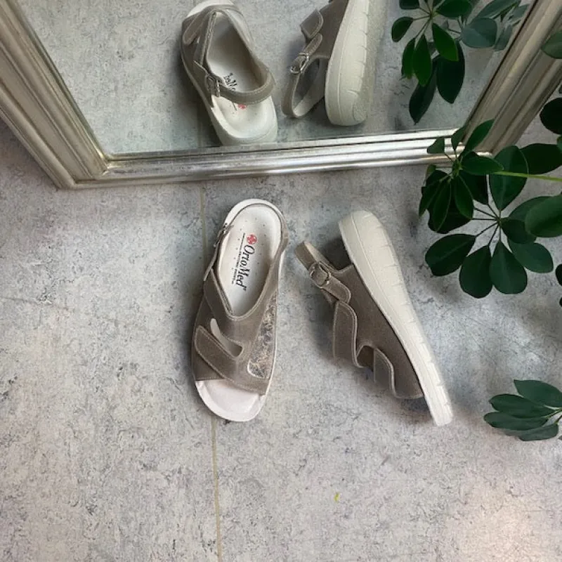 Bred ortopædisk sandal i beige med velcro i forfod