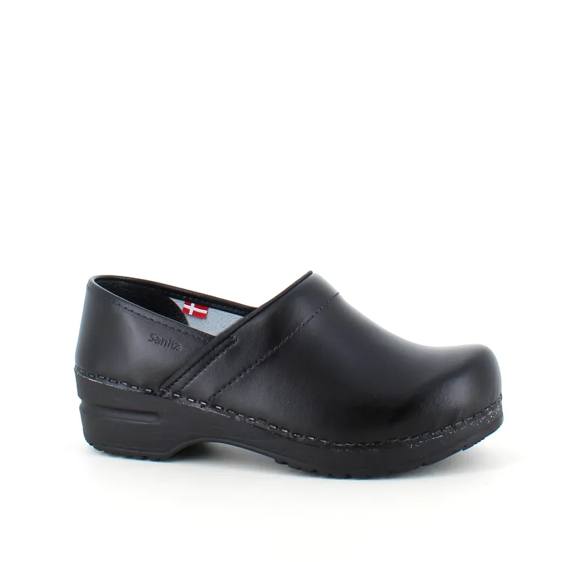 Træskoene er fremstillet i PU-læder, hvilket gør dem slidstærke og lette at vedligeholde.
