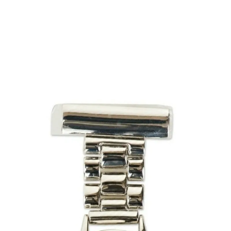 Bredt sygeplejeur i stål som er 6 cm langt og 3,5 cm bredt. Uret fås både i guld og stål.