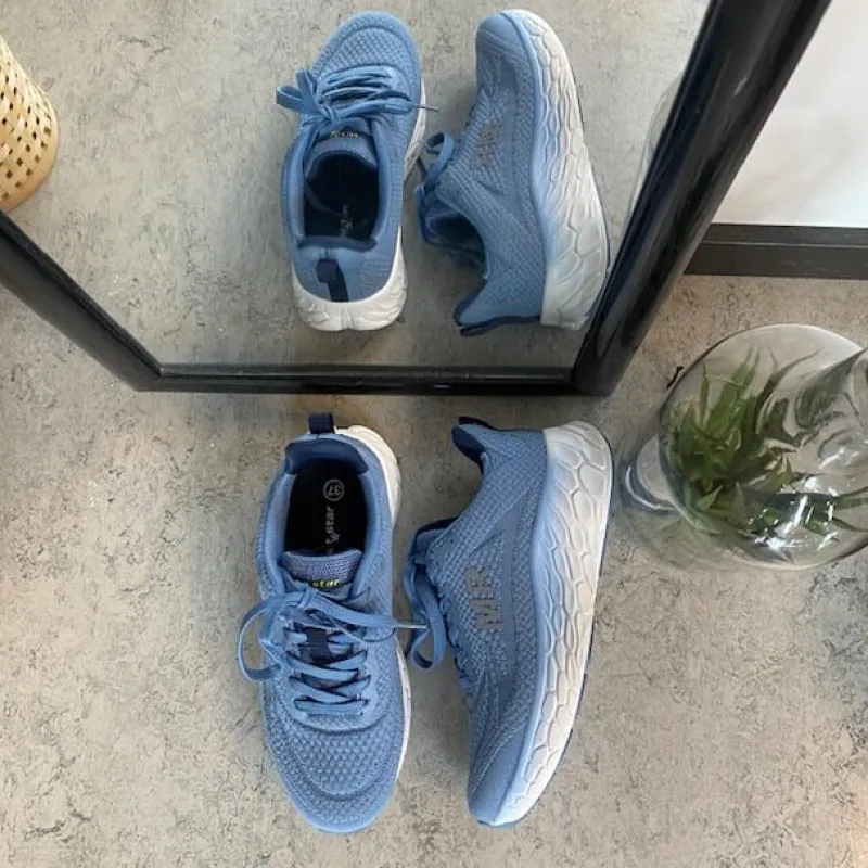 Blå sneakers med åndbar mesh-overdel, der sikrer god ventilation og komfort hele dagen.