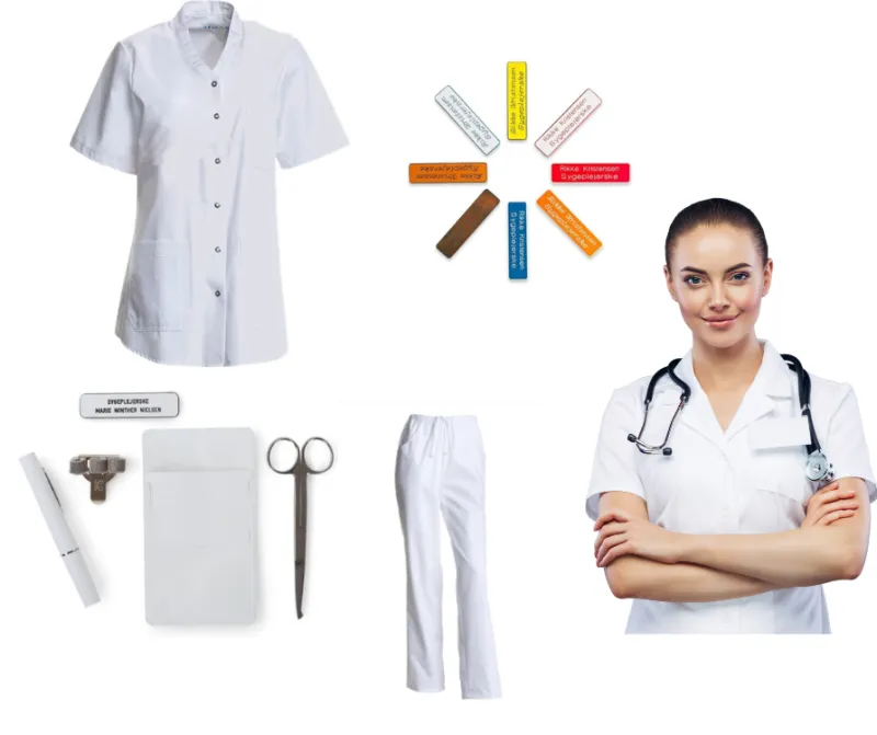- Uniform i hvid, bukser og overdel. Alt kommer i størrelserne xs-4xl.