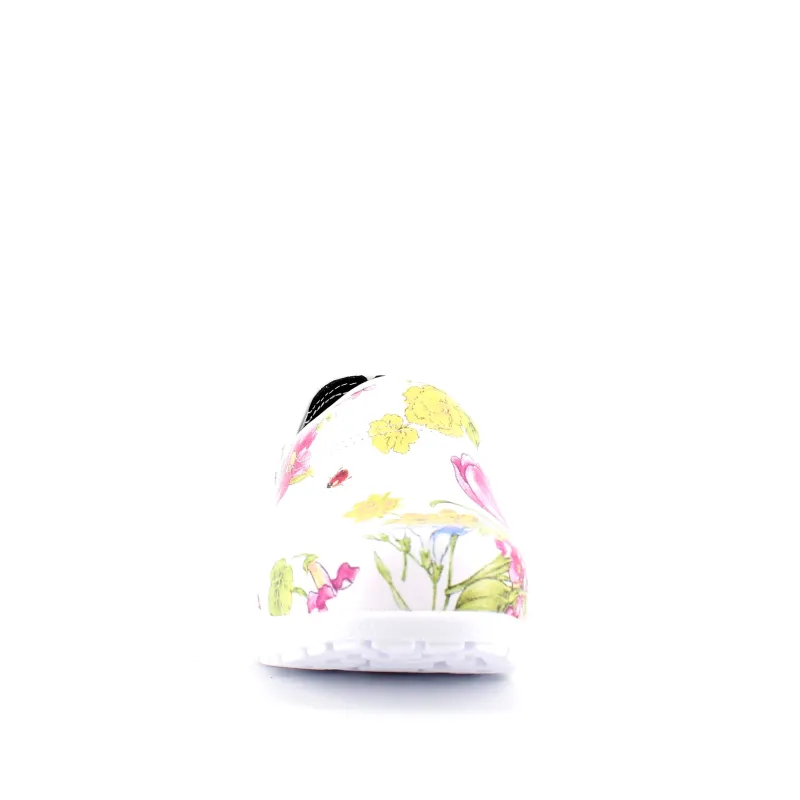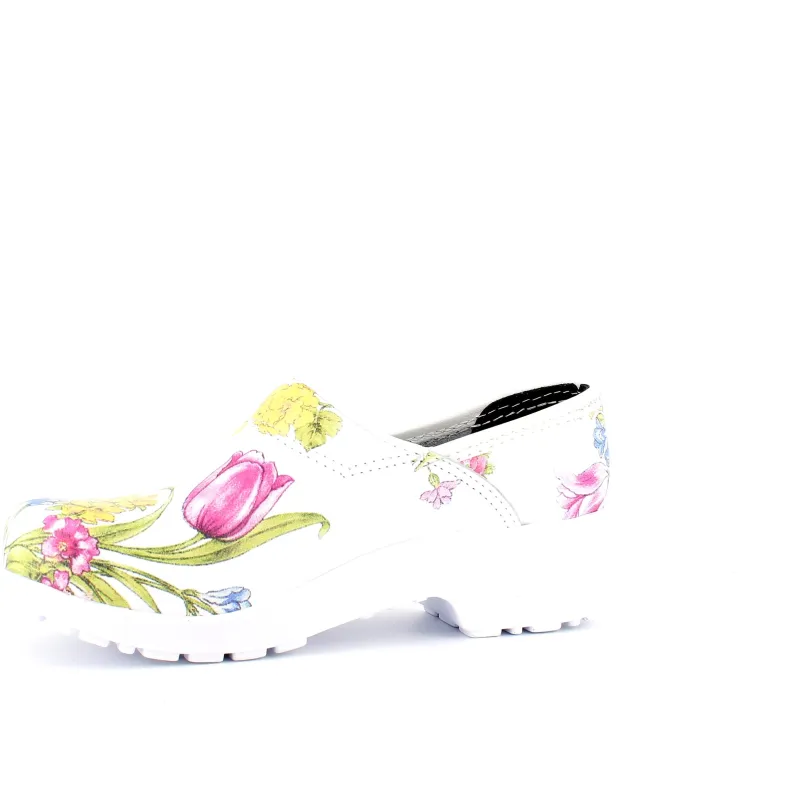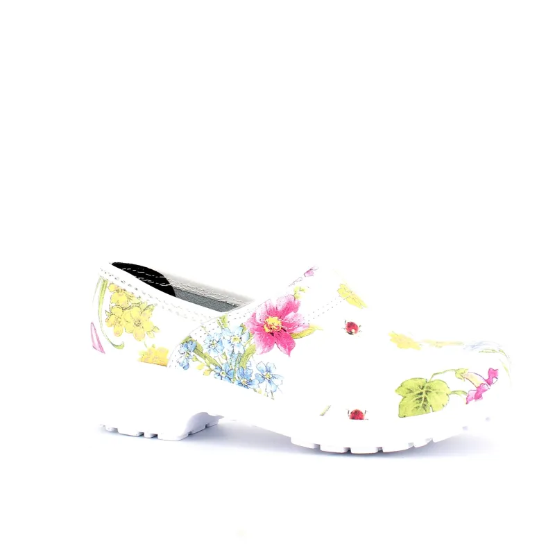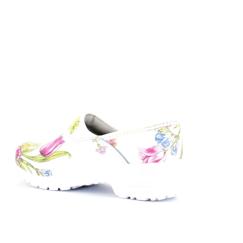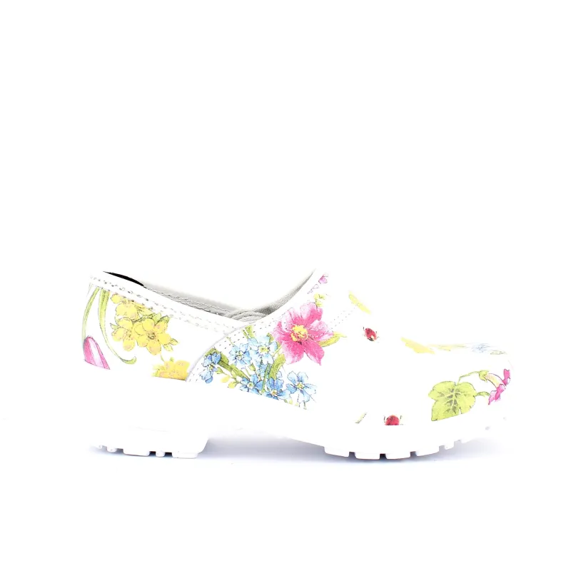 Hvid blomstret træsko i Dansk kvalitet med kap.
