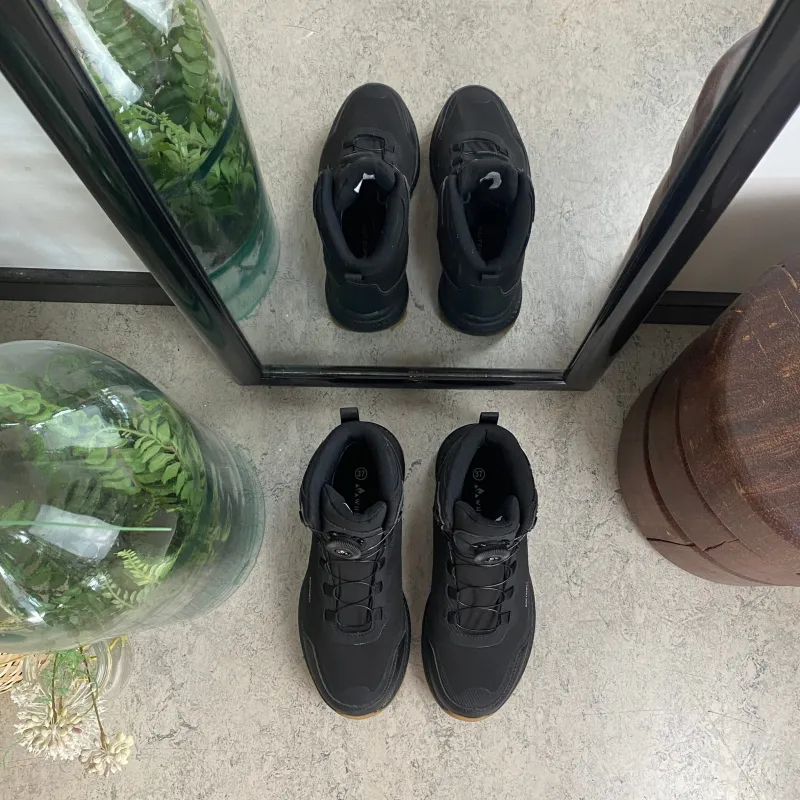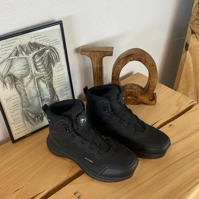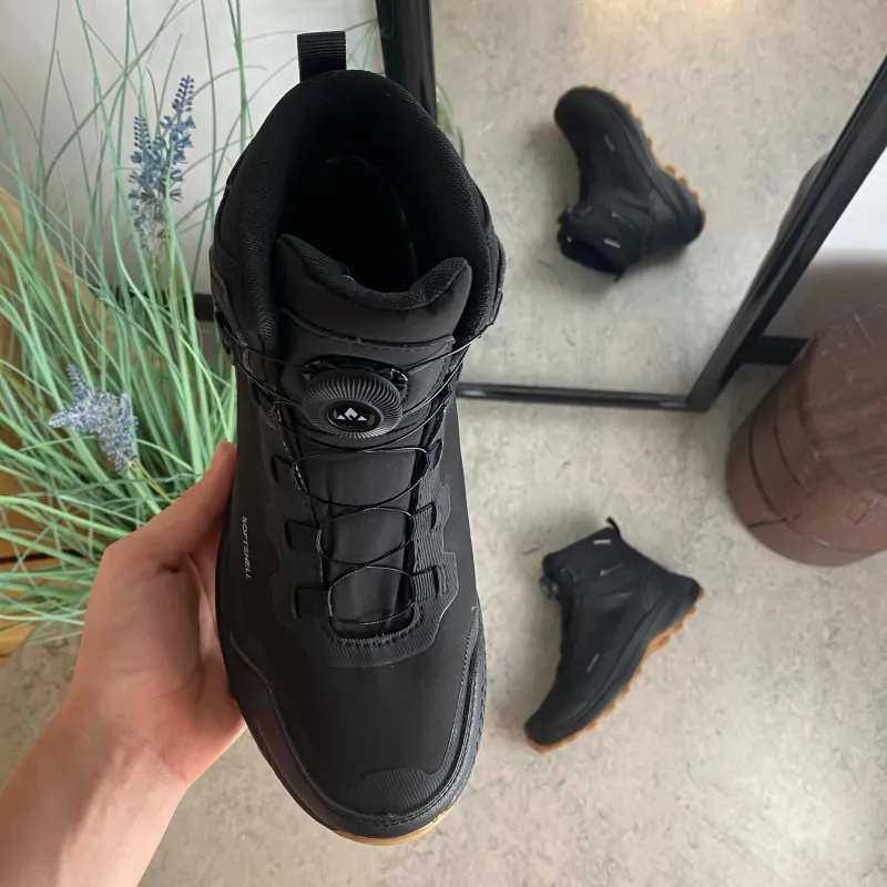 Overdelen er lavet i slidstærkt softshell-materiale, som gør støvlen let, fleksibel og behagelig at have på. Samtidig er den udstyret med en vandafvisende membran, så fødderne holdes tørre under skiftende vejrforhold.
